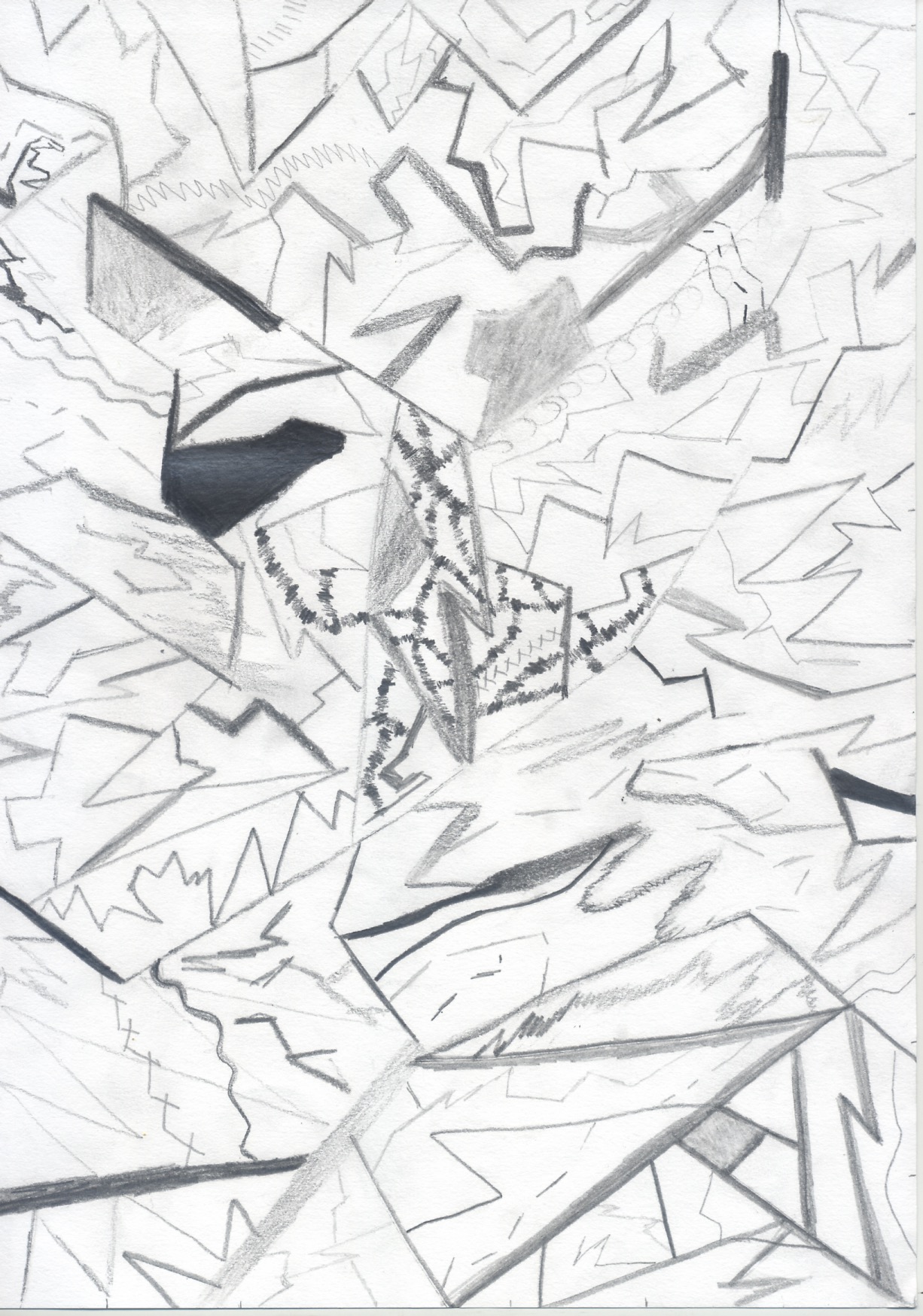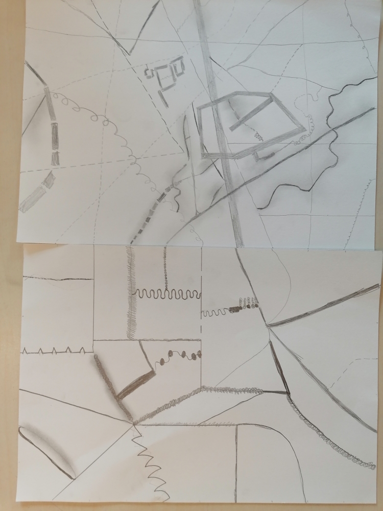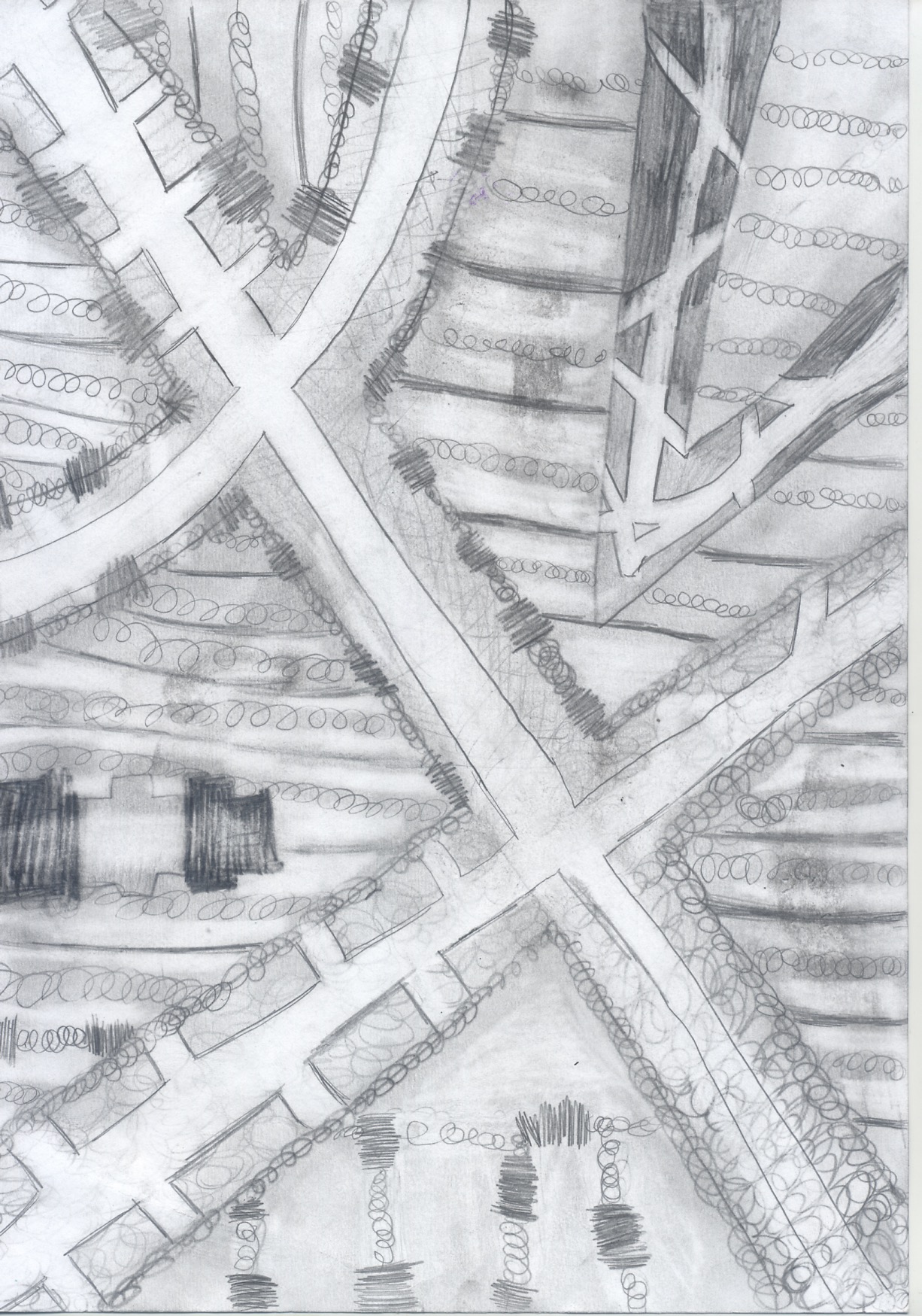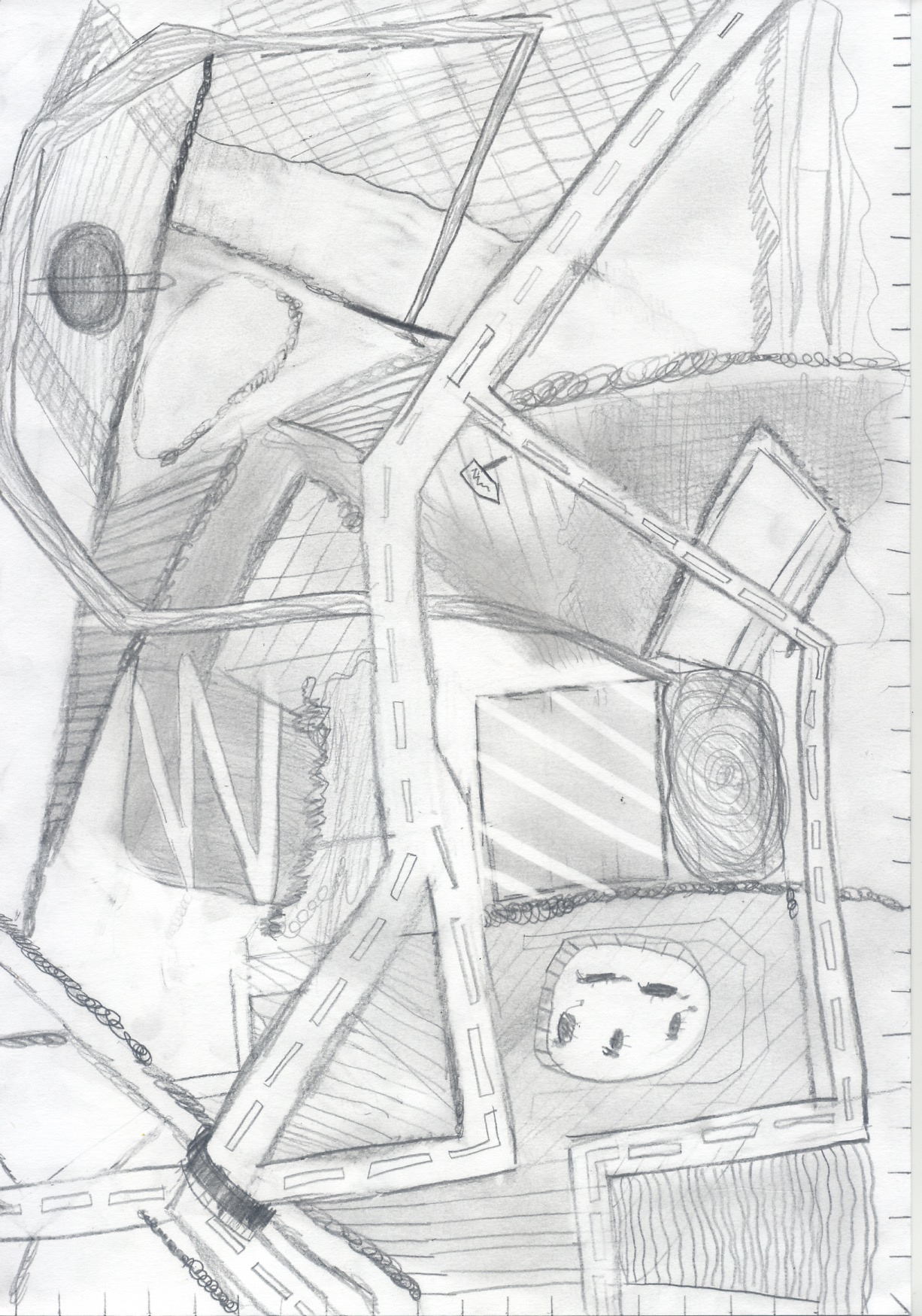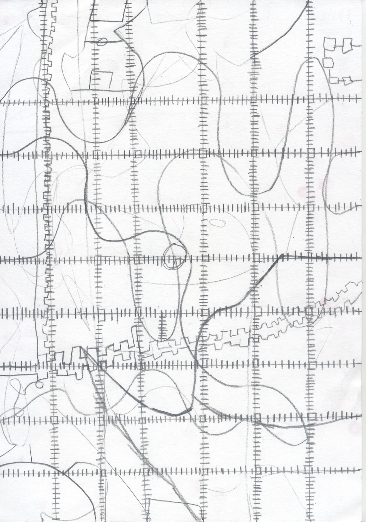 Après avoir ponctué le pourtour de leur feuille à dessin de petits repères permettant de joindre éventuellement les différents dessins entre eux pour réaliser une continuité paysagère, les élèves ont eu à créer avec leur crayon à papier des lignes de toutes sortes, épaisses, fines, sombres ou claires, avec des matières, lisses, hachurées, faites de textures, de contrastes ou très construites par les effets géométriques, ou au contraire anarchiques en apparence, parallèles ou non, etc...